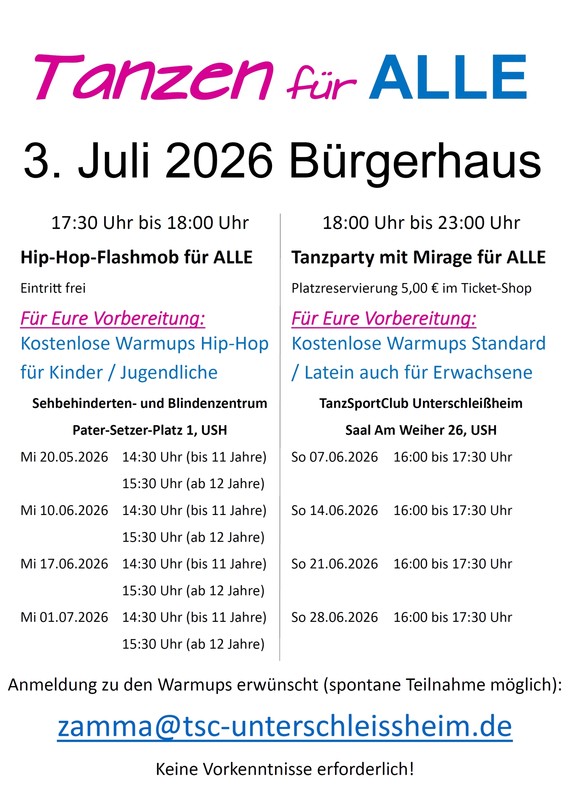 am kommenden Sonntag, den 08.03.2026 entfällt das Training. Ansonsten haben wir unser normales Trainingsprogramm. Zusätzlich findet am Freitag, den 13.03.2026 19:00 Uhr die Mitgliederversammlung des TSC Unterschleißheim statt.