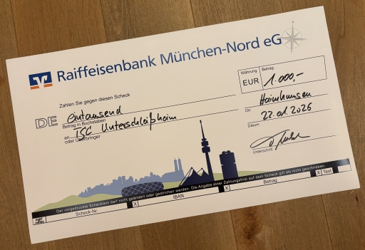 Der TanzSportClub Unterschleißheim war neben 47 weiterer Organisationen Begünstigter dieser Spendenaktion und durfte einen Scheck über 1.000,00 € für die Kinder- und Jugendarbeit entgegennehmen.